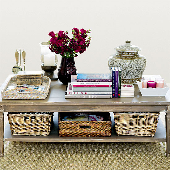 Like a full table? Add a few baskets and a tray to organize the clutter.